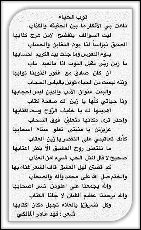 الشاعر فهد بن عامر المالكي قصيدة (ثوب الحياء)