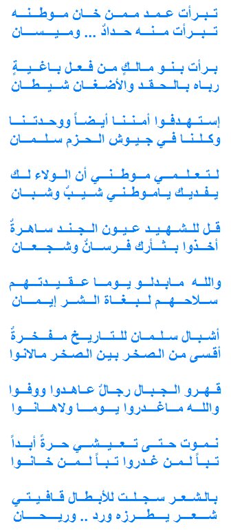 ابيات شعريه للشاعر الأستاذ / صالح مصلح المالكي ، محافظة اضم ، بمناسبة نجاح العملية الأمنيه في بني مالك .