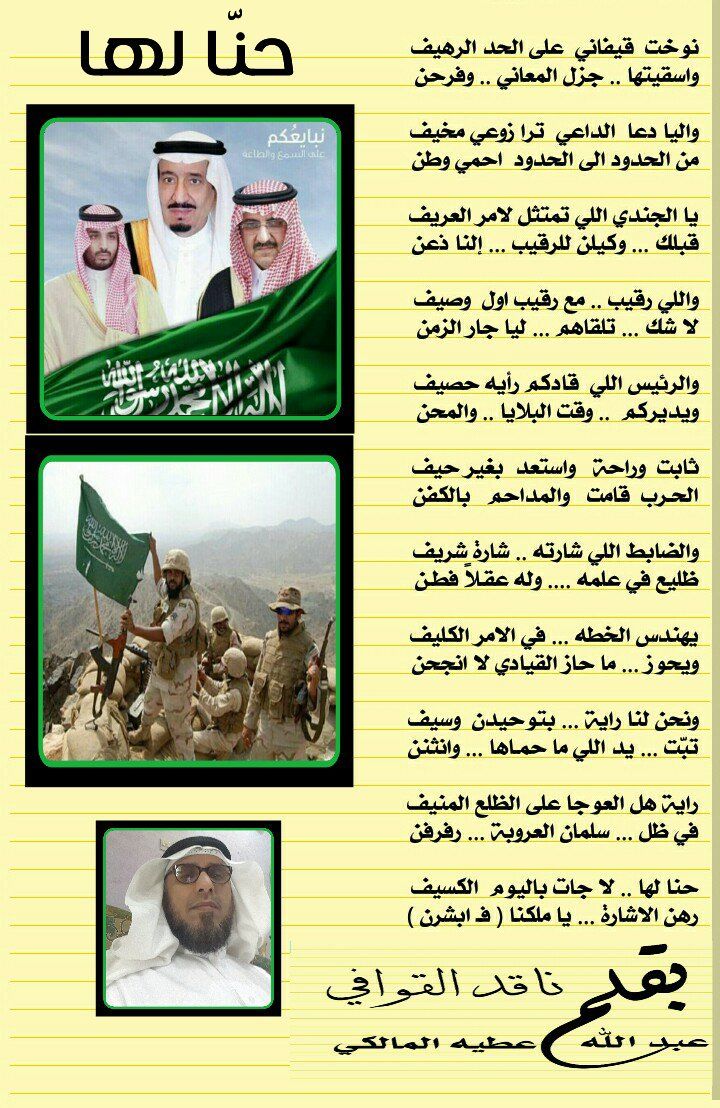 الشاعر عبدالله بن عطيه المالكي (ابو البراء ) جادة قريحته بهذه المنظومة الرائعه وحكومتنا الرشيده وجنودنا البواسل المرابطين على الثغور يستاهلون فهم صمام الامان بعد الله سبحانه وتعالى لبلاد الحرمين الشريفين ونسال الله ان ينصر الاسلام والمسلمين وأن يهزم اهل الشرك و الكفر والظلال