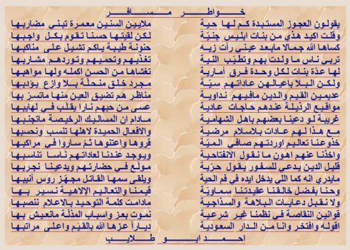 هذه القصيده الرائعه جادة بها قريحة الشيخ والشاعر والاديب احمد بن عطيه ابو طلايب المالكي وهذه القصيدة الجزله تعتبر من القصائد المتميزه التي اتحفنا بها الشيخ ابو يحيى .