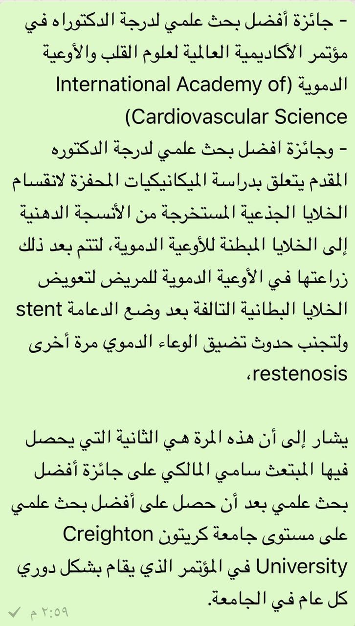 الدكتور سامي بن جارالله المالكي يحصل على أفضل بحث علمي لشهادة الدكتوراه