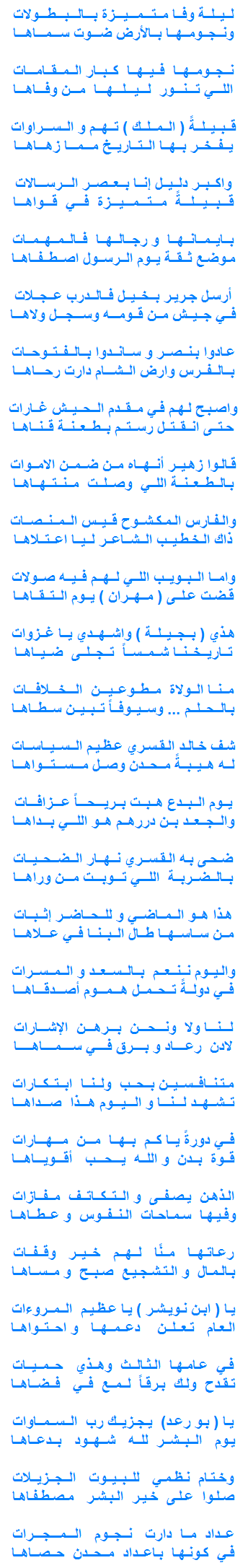 من أمجاد قبيلة بني مالك الطائف قصيدة نبطيه جادة بها قريحة الشاعر فرحان المالكي امتدح فيها رجال قبيلة بني مالك الذين كتب عنهم التاريخ في طي صفحاته الخالدة ماثرهم وبطولاتهم .