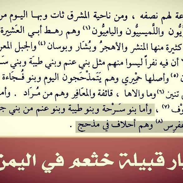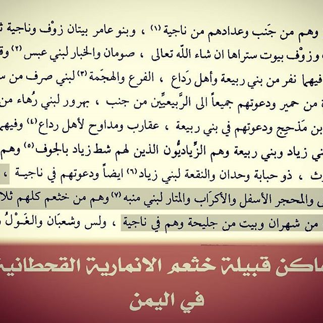 وهنا نجد لسان العرب الحسن بن احمد الهمداني يذكر بعض بطون قبيلة بني منبة وقبيلة أكلب الخثعميتين في اليمن في كتاب صفة جزيرة العرب وديارهم في المحجر الأعلئ والمحجر الأسفل وايضاً بمنطقة الاكرأب والمتار وجميعها في بلاد قبيلة قائفة (قيفه) وجميعهم اليوم في عداد بنو ناجية من مراد اما ربيعة المذكورة في الصورة فهي من جنب واما عبس فهي ايضاً مرادية وهنالك قبائل كثيرة تحمل اسم عبس في اليمن منها عبس العكية الازدية وعبس الرعينية الحميرية وهذة المذحجية وبنو عامر المذكورين في الصورة هم مايعرف اليوم باسم قبيلة صباح وصومان تقع في بلاد العرش من رداع