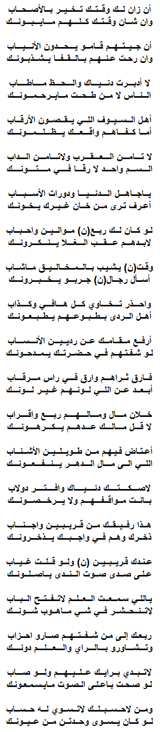 القصيدة للشاعر المعروف زابن الدوسري الي منها البيت المشهور الذي يقول فيه ربعك لمنك شفتهم صاروا احزاب وتشاورو بالعلم والراي دونك .