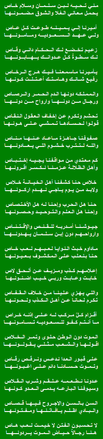 الشاعر سعد بن خميس السويحي المالكي من شعراء بني مالك الطائف المبدعين جادة قريحته بهذه الابيات النبطيه الرائعه والمتميزه يمتدح فيها ولي العهد صاحب السمو الملكي الامير محمد بن سلمان بن عبدالعزيز حفظه الله تعالى . ابيات رائعه بروعة قائلها ويستاهل اميرنا الغالي محمد بن سلمان .