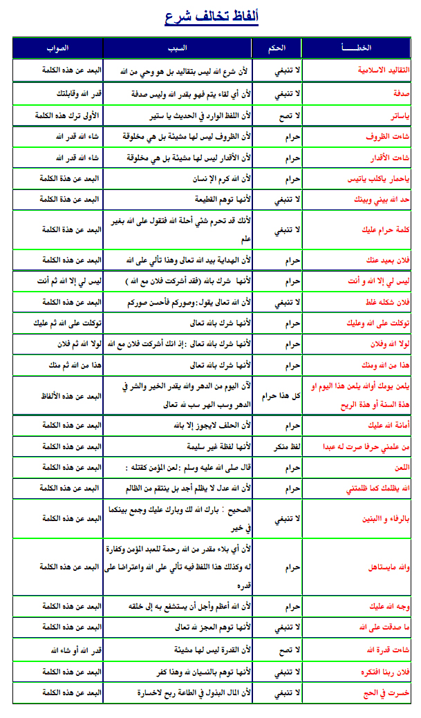 في هذا المقام نتكلم عن قضية مهمة، وهذه القضية أنكم لو تأملتم معي في ألفاظ العامة اليوم من الأمثال ونحوها، لوجدت أن في ألفاظ العامة وأمثالهم أموراً مستشنعة، وبشعة، وبعضها يخالف العقيدة، ويمسها مساساً سيئاً، وبعض هذه الأشياء ورد فيها النهي الصريح، وبعضها إذا تأملت فيها عرفت مصدر الخطر، وعظم الأمر، ونحن نضرب بعض الأمثلة مما يتداوله العامة اليوم في كلامهم من الأمور المخالفة للعقيدة، أو للأدب الإسلامي على الأقل،