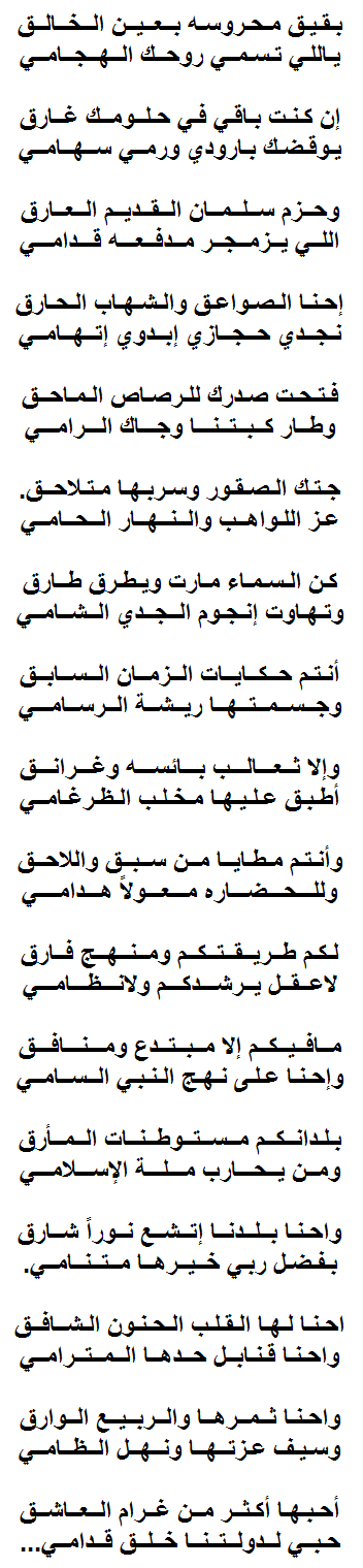 كالعاده بعض شعراء بني مالك الطائف يتفاعلون مع الحادث الاليم الذي حصل في منطقة بقيق ويوكدون حبهم وولائهم لهذه البلاد وولاة امرها .