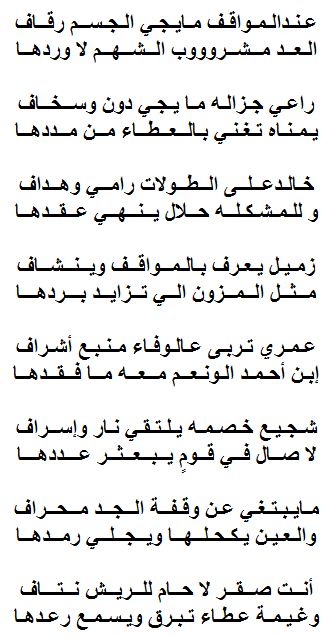 هذه القصيده النبطيه للشاعر خالد بن احمد العمري وهي موجهه الى الاخ الشاعر خالد بن سعد المالكي حيث كانت بيهم زماله في العمل ومواقف يتذكر كل منهم الاخر والطيب وصاحب الطيب لا يمكن ان يذهب من ذاكرة الناس الطيبين .