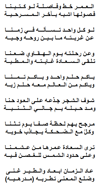 هذه الابيات النبطيه جادة بها قريحة الاخ الشاعر فواز بن سعيد المالكي ... والله المستعان الانسان تمضي به الايام والعمر في رحلة الحياة مابين الامل والرجاء والامنيات ولكن ما يتحقق الا ماكتبه الله للانسان على مدى سنوات العمر .