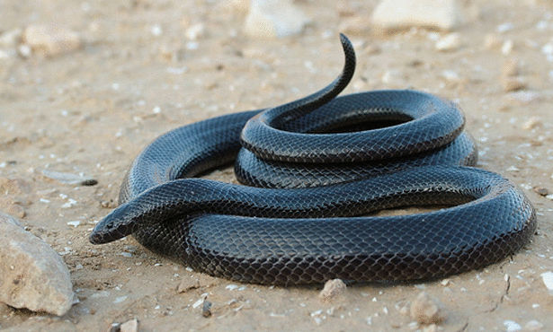 يختلف عن بقية الثعابين من حيث الحجم والطول والسلوك فطوله قد لا يتجاوز الأربعين(40) سم الى خمسين(50) سم وراسه ليس عريض لكنه مدبب ونحيف وجسمه أسود وبطنه يميل الى البياض وهو لا يحب التسلق كبقية فصائل الثعابين وكثيرا ما يتمركز على الطرقات وخروجه يكون في اول الليل مع المغرب اثناء عودة الناس وتحركاتهم وكذلك له خروج آخر الليل ومع قرب الفجر أثناء خروج الناس من منازلهم الى مزارعهم وقد يهاجمك حتى ولو لم تتعرض له .